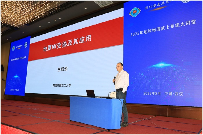 中国工程院外籍院士、英国皇家工程院院士王仰华,作了《地震W变换及其应用》报告,介绍了由他本人提出的“地震W变换”,W变换定义了在主频附近具有对称频率权重的高斯窗函数,并提出用瞬时频率的加权平均来估计主频;采用频率权重函数的W变换提高了地震谱的低频时间分辨率;实例表明,W变换可以有效地探测低频异常,可用于油气勘探中的储层描述和近地表工程中的岩溶探测。