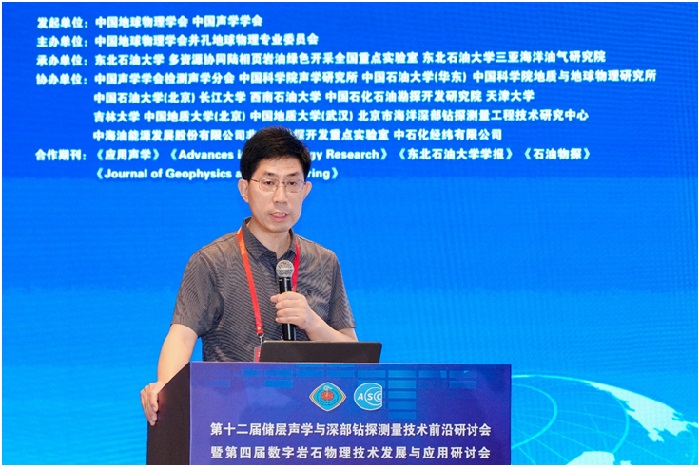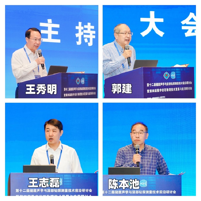 开幕式后,大会特邀报告环节精彩纷呈。唐晓明教授作题为《多尺度裂缝的声法探测:理论、方法和应用》的报告,系统阐述了声波远探测技术在裂缝性储层评价中的突破性进展;李善军博士在《美国井孔电磁探测技术现状及发展》报告中,梳理了国内外电磁探测技术的发展历程与未来趋势;余刚教授以《分布式光纤声波传感技术在油气资源勘探开发领域的应用》为题,介绍了分布式光纤声波传感技术,并重点阐述了该技术在深层油气勘探中的创新应用成效;陈德华研究员在《储层声学及深地声学探测研究进展》报告中,介绍了团队在多相孔隙介质声学理论等基础研究方向的进展,以及自主研发深地探测装备中的传感器、仪器的最新成果;王维红教授在《地震资料多次波压制技术进展》报告中,探讨了多次波压制技术的发展与应用;李军教授在《阵列声波测井在裂缝性致密储层有效性评价中应用》报告中,展示了阵列声波测井在裂缝有效性评价中的关键技术;余春昊首席专家在《测井数字岩石物理技术发展与应用》报告中,系统阐述了数字岩石物理技术的进展与前景;金宁德教授在《油井油气水三相流产出剖面测井方法研究进展》报告中,介绍了三相流测井方法的最新研究;胡恒山教授在《液固界面固体侧非均匀纵波的椭圆偏振轨迹》报告中,深入分析了液固界面声波传播特性;梁瑞虹研究员在《面向超深层油气勘探测井装备用压电材料研究挑战及进展》报告中,介绍了高温压电材料的研发进展。