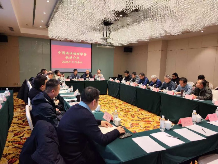 中国地球物理学会铁道分会2026年工作会议于2026年1月8日在北京市大兴区召开。出席会议的会员单位有铁一、二、四、五、六院,中国铁设、中铁设计,中铁上海院,中铁资源,中铁西南院、中铁西北院、中铁大桥院、铁科院北京铁科检测公司、劳雷公司,北京眷诚铁道工程技术有限公司,中南大学、五维地科、奥瑞科贸的代表共计34人。中国地球物理学会副理事长兼秘书长郭建、副秘书长胡敏出席了本次会议。会议由铁道分会秘书长谢昭晖主持,重点研究确定了2026年“中国铁路工程物探与检测新技术研讨会”会议主题、规模、时间、地点等相关事宜,并讨论了分会的其它工作,纪要如下: